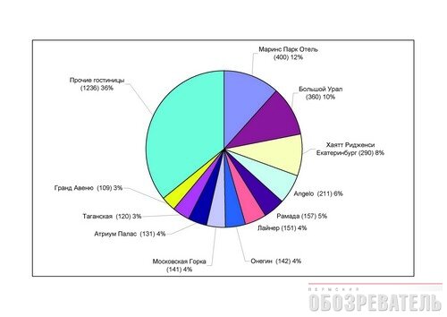 В Екатеринбурге половину рынка делят между собой семь крупнейших гостиниц